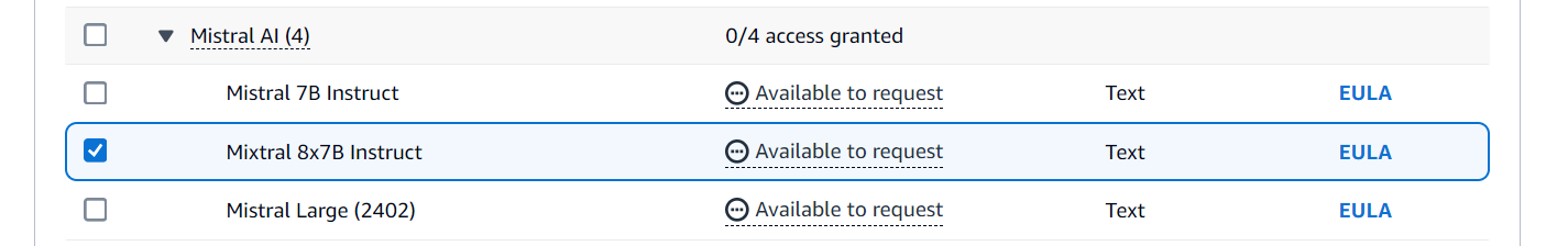 .envfile and paste the following content in it:BEDROCK_REGION= <your aws bedrock region> BEDROCK_MISTRAL_MODEL_ID= 'mistral.mixtral-8x7b-instruct-v0:1' BEDROCK_TITAN_TEXT_EMBED_MODEL_ID= 'amazon.titan-embed-text-v2:0' AWS_ACCESS_KEY_ID= <access key for bedrock aws account> AWS_SECRET_ACCESS_KEY= <secret key for bedrock aws account> AWS_SESSION_TOKEN= <session token for bedrock aws account> S3_BUCKET_NAME= <your s3 bucket name> S3_REGION= <your s3 region> COGNITO_IDENTITY_POOL_ID= <your cognito identity pool ID>